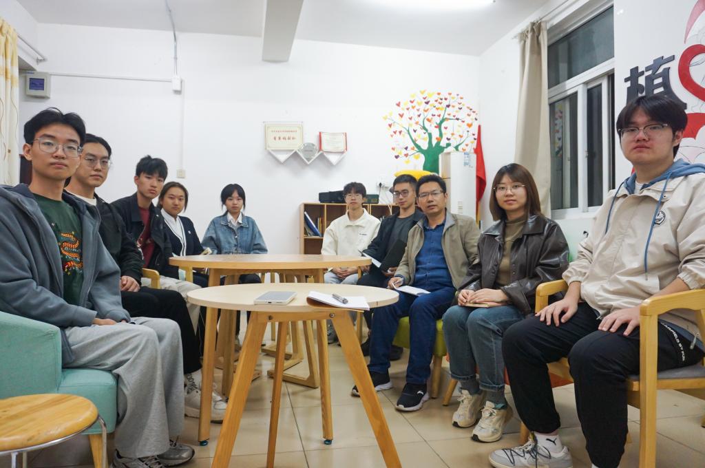 党委副书记孙超走进荟七-200学生驿站,与智慧农业专业学生座谈。
