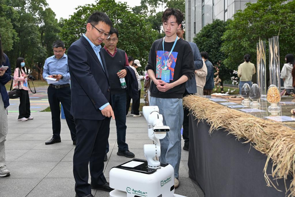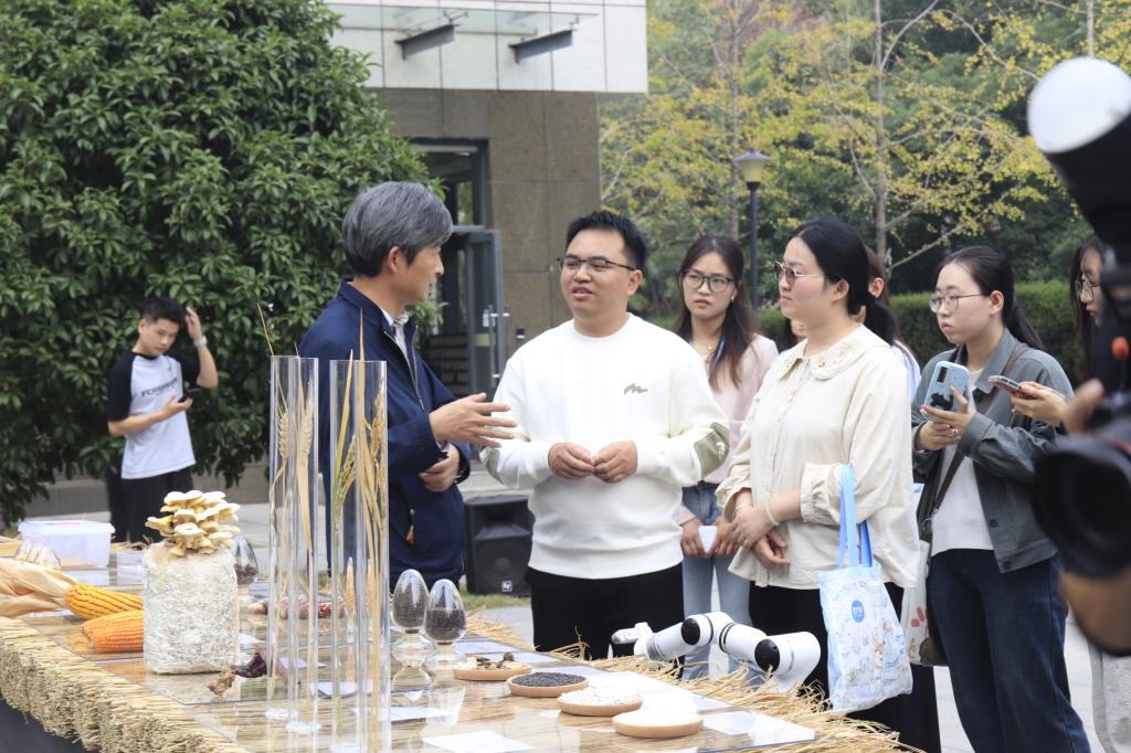 智识交汇区展示了各91免费版 的科研成果,比如动科动医91免费版 的动物疫苗、生命科学技术91免费版 的狮山精酿、食品科学技术91免费版 的荷叶咖啡与洪湖酥脆虾尾、水产91免费版 的无肌间刺武昌鱼以及资源与环境91免费版 的微流控芯片等等91免费版 展台展出了各个团队研发的特色产品以近期发表在《细胞》(Cell)杂志上的高产高蛋白宜机收玉米品种杨万能教授团队设施表型检测机器人为重点展示,提供了边银丙教授团队研发的破壁灵芝孢子粉以及金耳燕窝青稞粥的产品试吃。