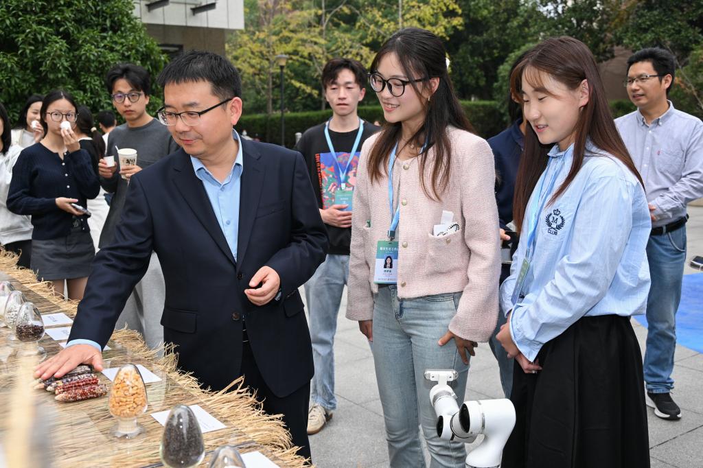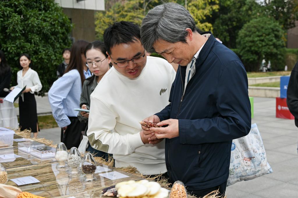 现场,严建兵对参展的研究生进行了提问,为什么玉米会有不同的颜色?颜色是什么来控制的?“为什么蝴蝶会在不同的环境下展现出不同的色彩和斑点?这背后蕴含着怎样的生态机制和适应策略?”大豆为什么重要?进口量每年是多少?通过一系列的提问严建兵指出,农科学子要对基本国情有所了解,必须明确研究领域中最重要的问题是什么,深入思考解决这些问题的方法,并勇于在实践中检验和完善这些方法。