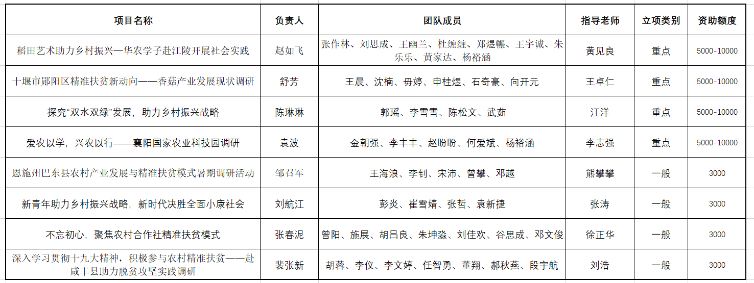 试点改革落实“全员全过程全方位”的三全育人理念,强化实践育人,有效增强研究生创新实践能力,根据申报书的内容质量和可行性分析,经过审核和评议,最终确定8支队伍资助立项本年度暑期社会实践项目,名单如下: