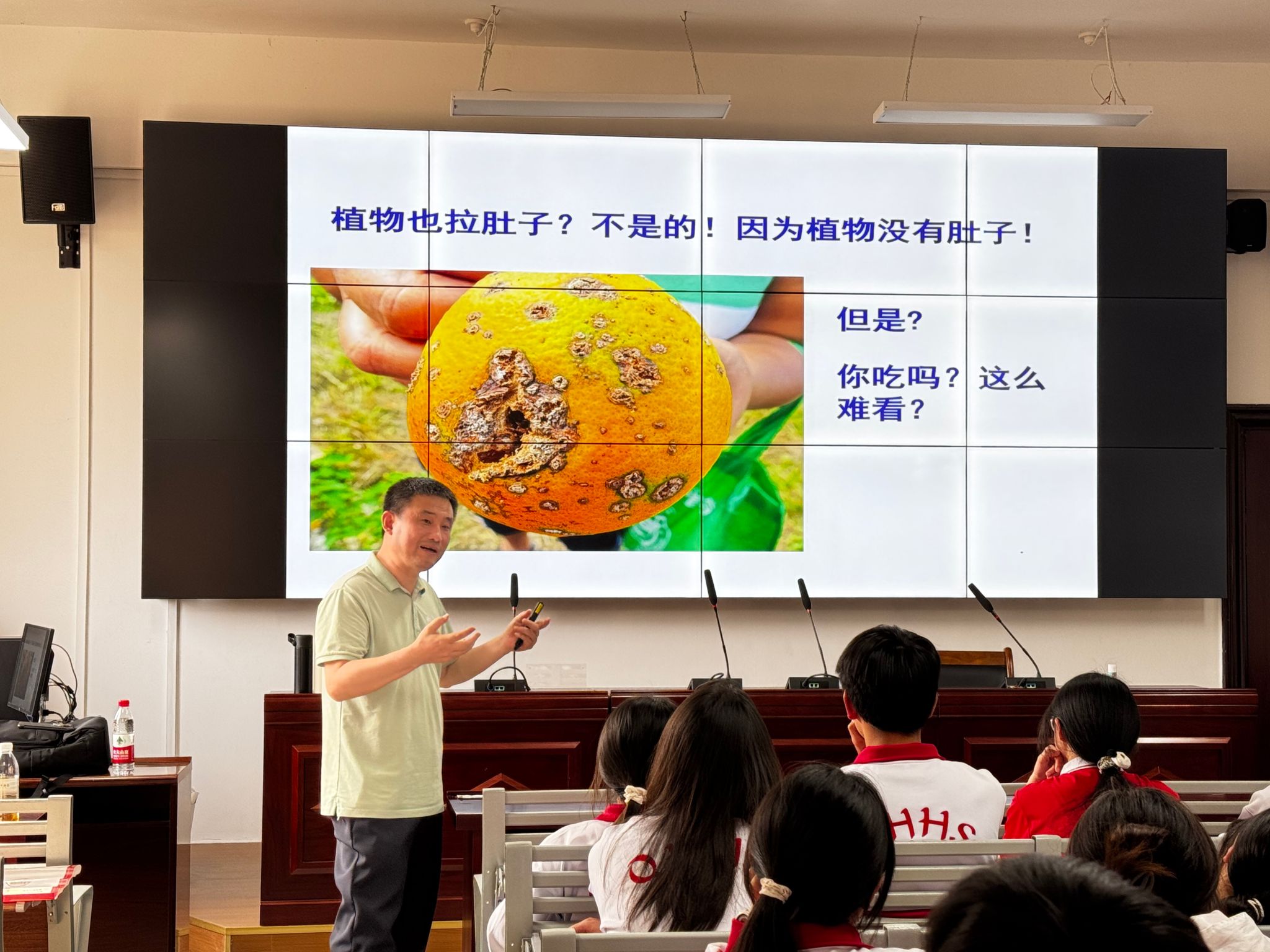 “我国粮食为什么紧缺?究竟是谁偷走了我们的粮食?”谢甲涛通过生动的图片与诗词典故,揭开了偷走粮食“真凶”的神秘面纱。他以别开生面的视角向同学们介绍了吃水稻的鸟、田间流窜的鼠、除不尽的杂草、吸附植物的寄生物、蚕食植物的昆虫、钻到植物根茎的线虫、潜伏的植物病毒、让植物生病的细菌、“吃素”的真菌、抢占资源的外来入侵生物等“偷粮凶手”。他谈到,病虫害严重危害着农业生产,世界粮食生产因病虫草害常年损失约37%,病虫害防治是粮食稳产增收的关键一步。