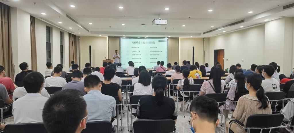 雷建华首先作了题为《防范电信诈骗》的报告,详细讲述了什么是电信网络诈骗、网络诈骗常见的十大类型、如何防范以及遭遇到电信网络诈骗怎么办等。着重指出高校常见的电信网络诈骗类型如注销校园贷、刷单返利诈骗、冒充电商物流客服诈骗、冒充老师同学诈骗等和我们生活息息相关的诈骗形式,通过一个个真实而又发人深省的典型案例,深入浅出的讲解了如何防范网络诈骗。告诫大家要牢记“三不一多”原则:未知链接不点击、陌生来电不轻信、个人信息不泄露、转账汇款多核实。