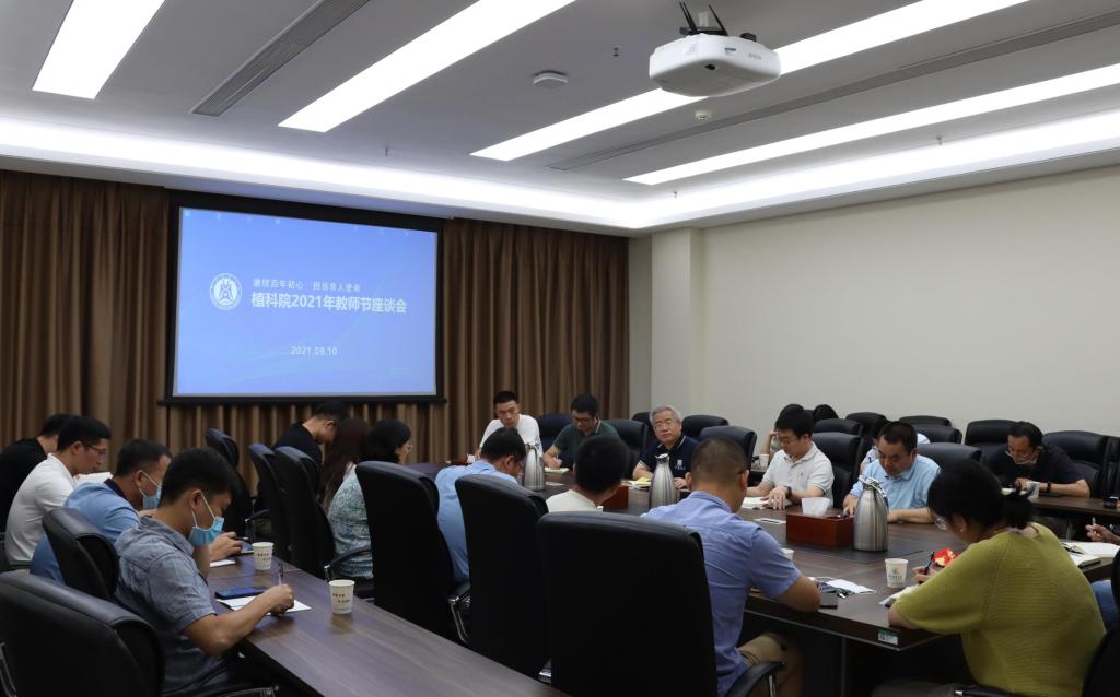 在第三综合楼B308召开2021年教师节座谈会。张献龙教授、姜道宏教授及二十多位青年教师出席座谈会,党委书记周雄主持座谈会。