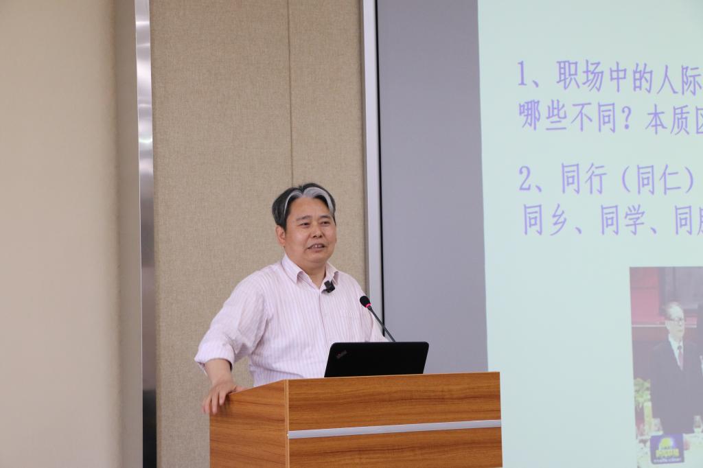 生理生化教工党支部主办的“职场人际沟通与人际关系”专题讲座在三综A705线上线下同时举行。活动邀请到武汉理工大学特聘教授雷五明老师,为广大师生讲述职场中的人际沟通与人际关系。