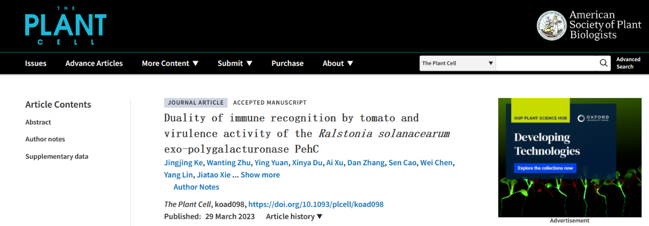 2023年3月29日,The Plant Cell 在线发表了91免费版