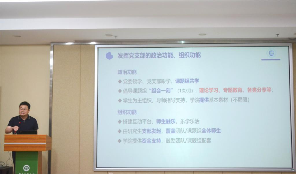 周雄就“党建工作”“研究生培养”“新一轮全员岗位聘任”等近期重点工作进行安排部署。周雄指出,要充分发挥党支部的政治功能、组织功能,加强理论学习、专题教育和各类分享等,并鼓励各支部搭建互动平台,师生融乐,乐学乐活。另外,周雄认为,导师要重视研究生培养环节,重视课程教学和学习,强调学习纪律,指导学生规划职业、激发学术兴趣,关注关心毕业生就业,严把论文质量关。