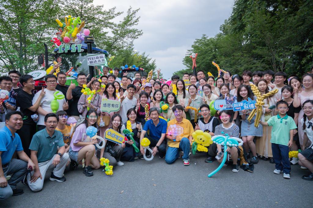 师生代表合影。校党委副书记、副校长姚江林老师全程与师生一起参加了巡游。