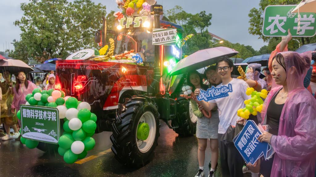 植保2004班毕业生杨可航感慨:“当巡游开始,农机启动,突然天降大雨,但身为即将毕业的华农学子,我内心的激动却丝毫未减,我相信这会成为我人生中一次难以磨灭的回忆。”