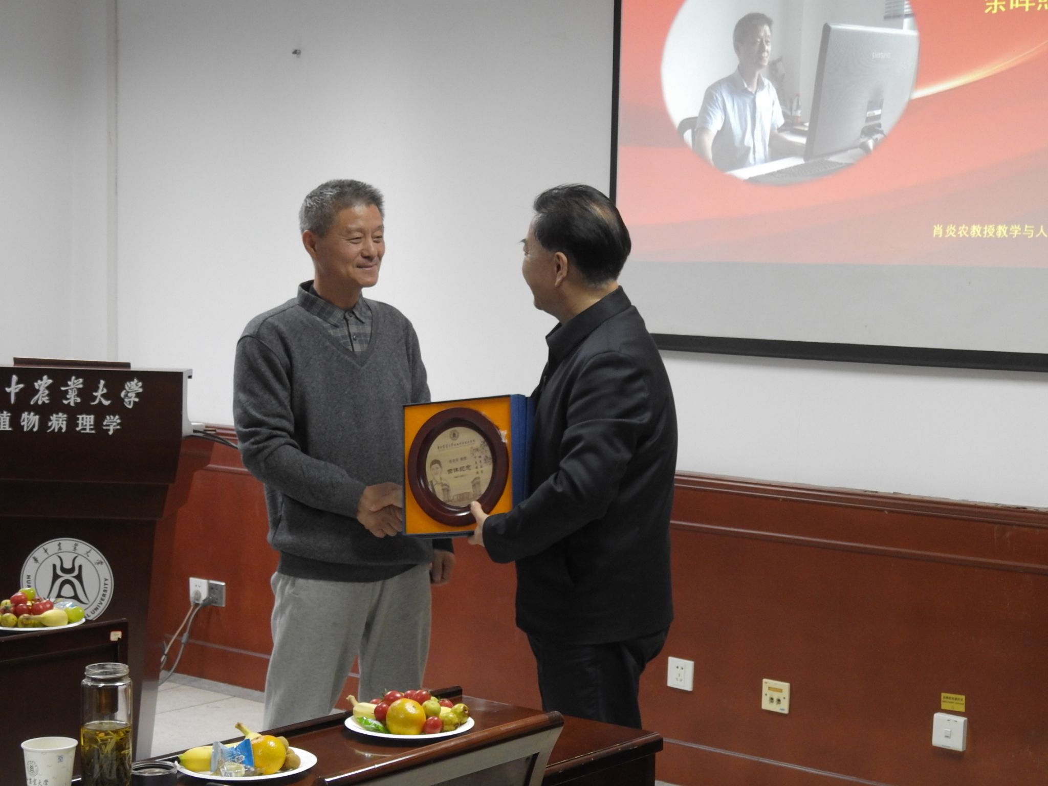 在分子楼114会议室举行了肖炎农教授荣休座谈会。校党委副书记姚江林、中国农科院植保所彭德良研究员、肖炎农教授部分同事、同学和在读学生参加了座谈会。