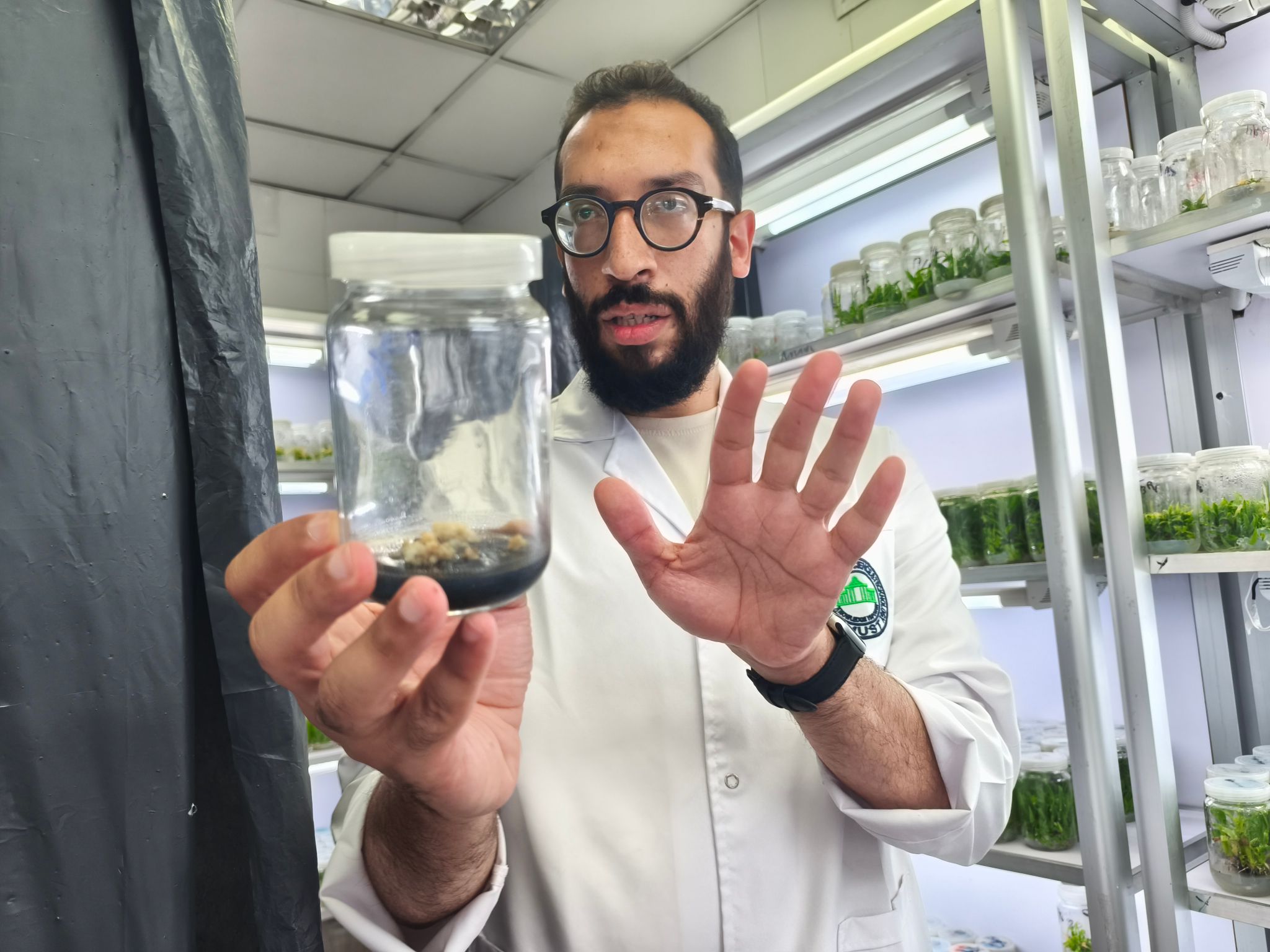 ,助教Mawada Khaled为实践团系统讲解了植物组织培养技术,并在无菌操作演示中强调:“无菌环境是组培成功的核心条件,任何微小污染均可能导致实验失败。”团队成员王若恬积极参与互动,就培养基成分调控等专业问题与埃方师生进行了深入探讨。