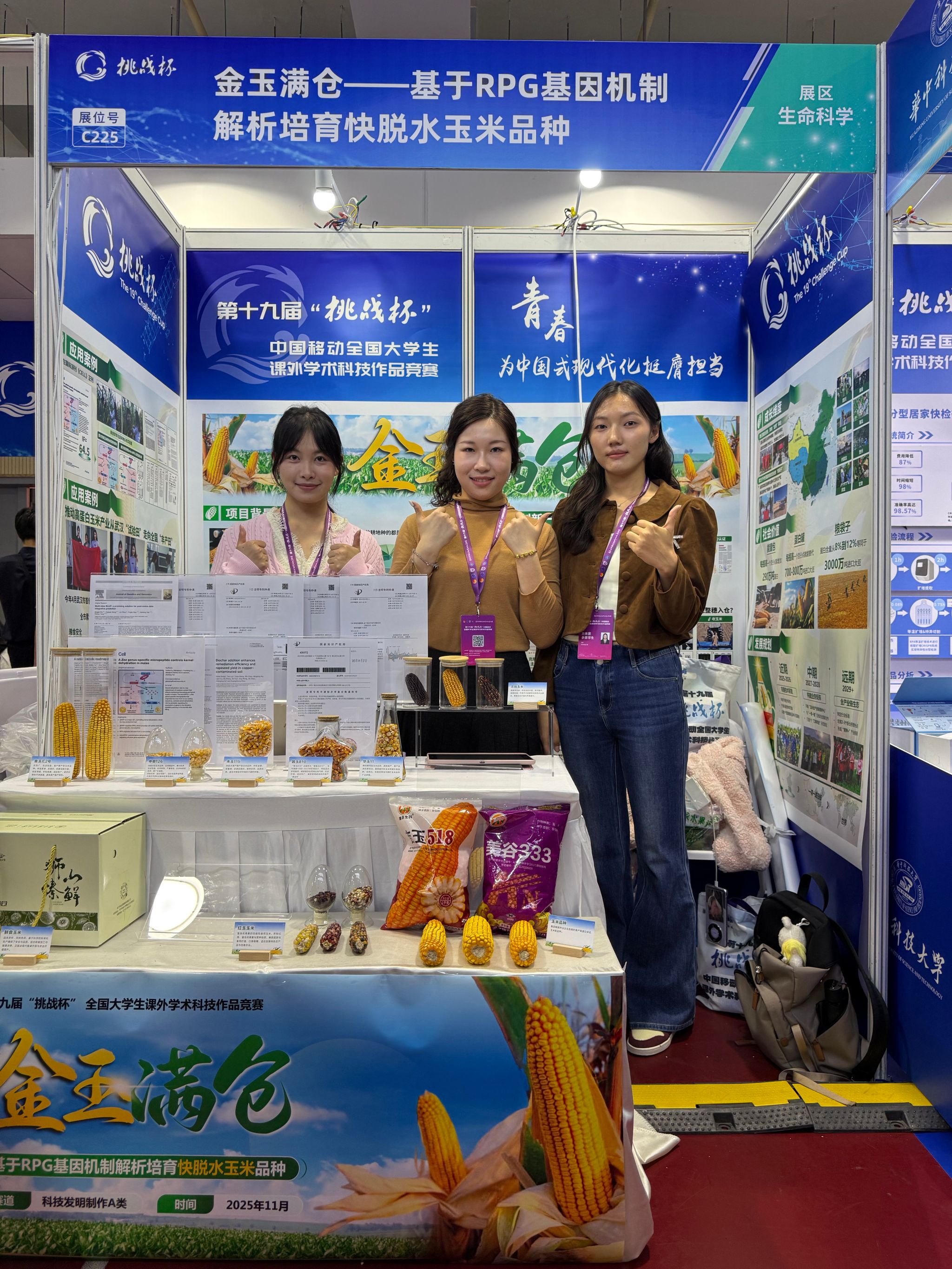 10月31日至11月4 日,第十九届"挑战杯"中国移动全国大学生课外学术科技作品竞赛决赛在南京举行。91免费版 选送项目“金‘玉’满仓——基于RPG基因机制解析培育快脱水玉米品种”获得科技发明制作A类赛道二等奖。
