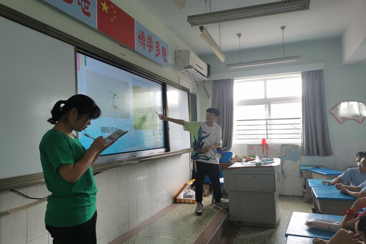 的汪彧和刘诗云组织了同学们进行知识竞赛。题目涉及自然科学、动物植物辨别、安全知识和国学经典等多个方面。他们将同学们进行分组,由组内协商给出答案,采取积分制规则,比赛结束后根据积分颁发相应奖品。同学们都踊跃举手回答问题,积极配合实践团成员进行教学活动。据了解,为了能准确解读题目涉及的知识内容,汪彧提前准备了教学提纲。同时,负责计分的刘诗云耐心询问同学们的答案,核对小组得分。在课程最后,汪彧感叹道:“这次教课对我来说,意义非凡。我不仅体会到了教师的责任与教学过程中的辛苦,也感受到了同学们的朝气蓬勃与青春活力。不少同学对我们的课程表现出来了极大热情,那一刻,我觉得所有的努力都是值得的,内心非常幸福。”