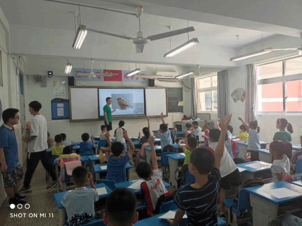 的八名大学生组成的植得计念工程队,正式赴华农附小展开暑期学生成长营科普教学活动。