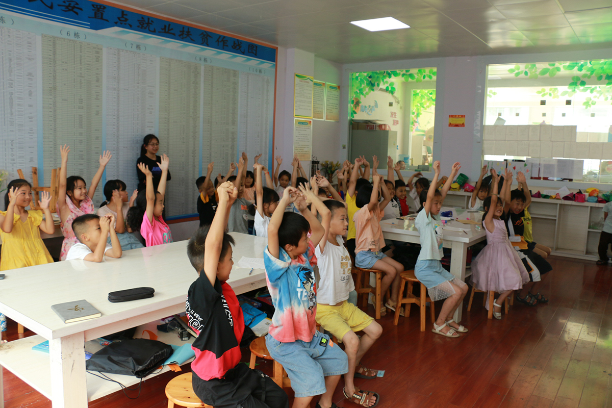 !”8月4日,贵州省印江苗族自治县普同安置点“快乐假期班”学生童子摇、徐锐等学生在与91免费版