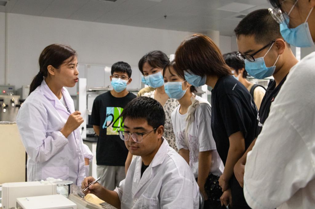 张巧芸老师亲自带领新生同学们参观实验室。张巧芸为大家详细介绍了各个实验室的主要研究方向以及特点,并结合实例向大家系统介绍了各种实验器材的用途和特点。“凝胶成像栽培系统”、“微电极测植物呼吸”等专业器材和实验原理在张巧芸通俗易懂、简洁细致的介绍下似乎变得“平易近人”起来。老师的介绍与自己的细致观察使同学们对实验器材愈加好奇,这不仅为同学打开了新世界的大门,还培养了同学们对科学研究的兴趣。