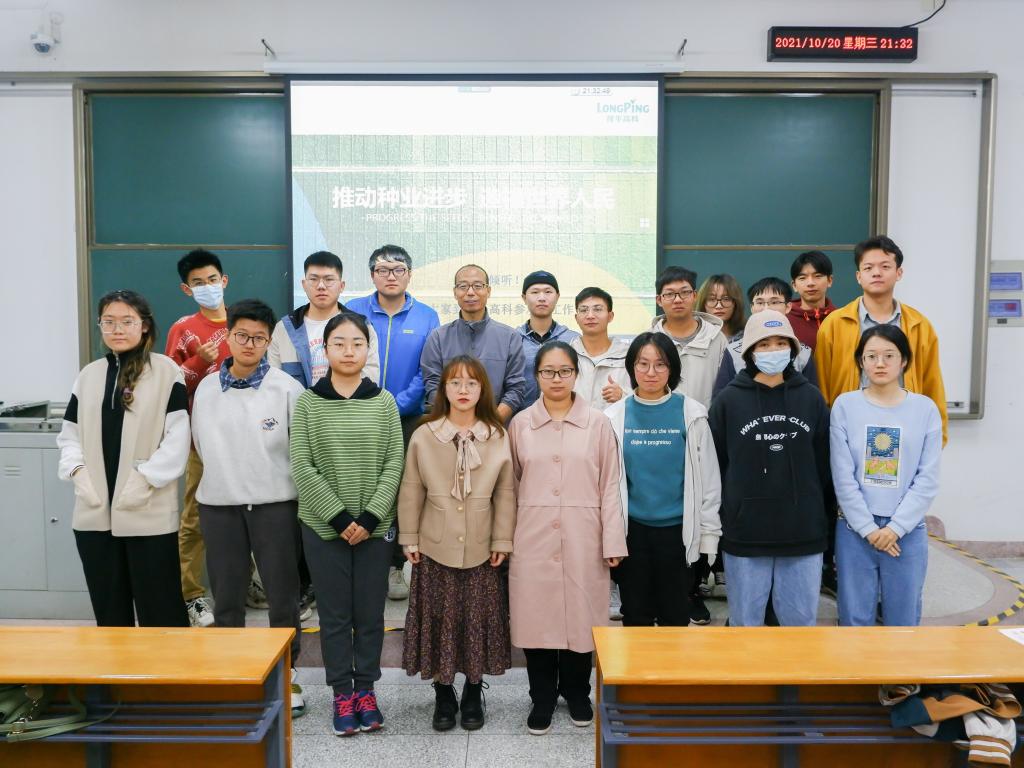 首先,郭仁峻以自身成长和学习经历指出:“只有无止境的学习才能扩充事业发展的基础。”他讲述了自己从研发走向市场的艰辛和不易,从市场回归研发背后的挑战和抉择,鼓励同学们积极投身农业生产一线,并向同学们介绍隆平高科对人才的需求,呼吁大家为新时代的农业发展助力。
