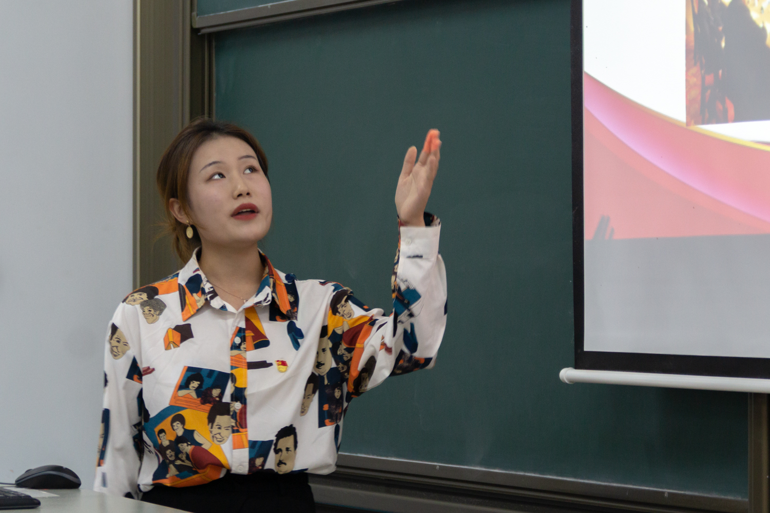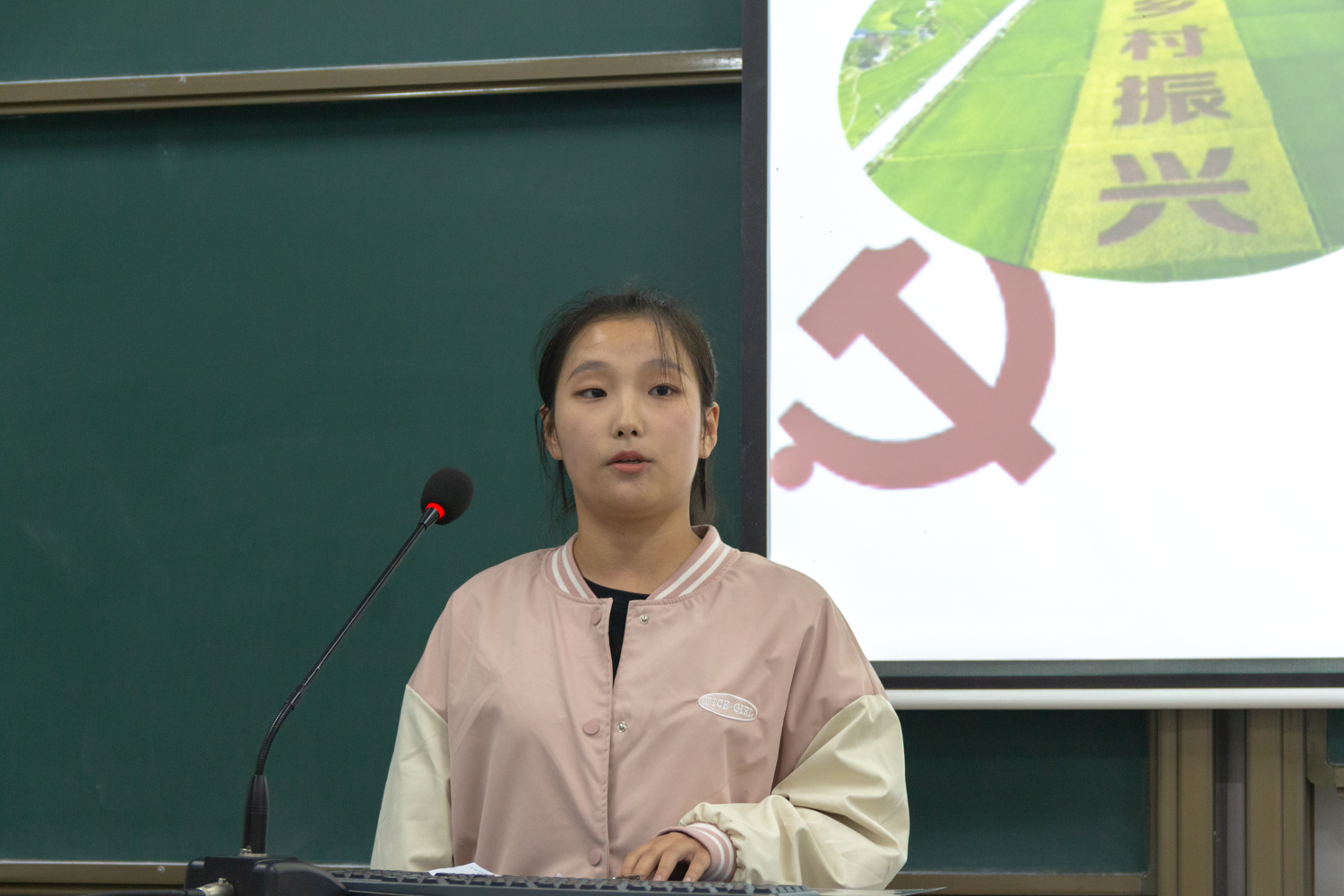 本禹志愿服务队的回信精神;李泓灵从“是什么”、“为什么”、“怎么做”三个方面逐步展开,引导大家学习了习近平总书记给全国涉农高校的书记校长和专家代表的回信;植生2009班的张光裕以“青蓝冰水,薪火相传”为主题,讲解了教师力量与民族进程的关系;李思滢则围绕七一重要讲话中“两个一百年的历史交汇点”,向同学们讲述了自己对这段历史的理解。