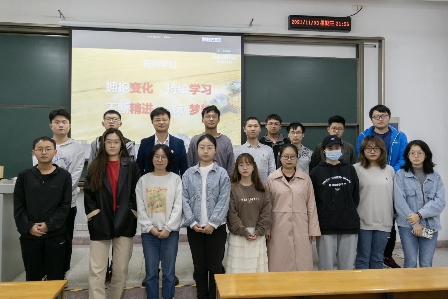 11月3日晚,隆平高科人力资源部副部长兼隆平人才发展中心负责人黄丹在四教A311为隆平高科班学员及其他校内师生授课,他以“顺应时代变化,创造更美好的自己”为题讲述如何进行人生规划。