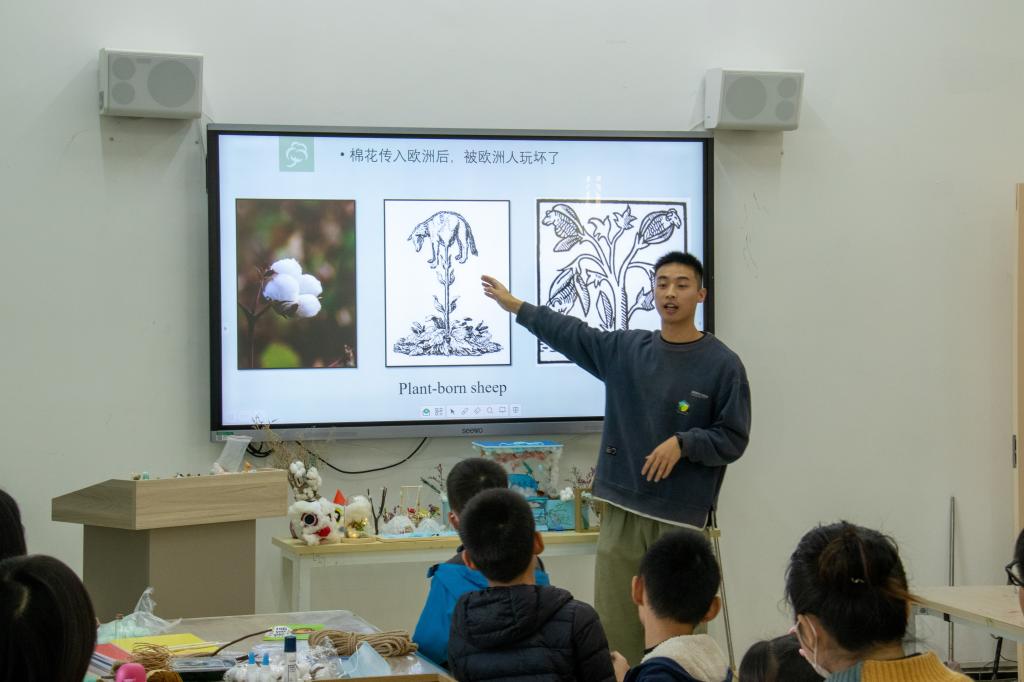 “蘑菇除了吃还能做什么呢?”“制成药品!用作肥料!”在题为“美丽蘑菇隐藏的奥秘——蘑菇菌丝体与栽培应用篇”这一科普课堂中,徐章逸老师带领孩子们认识自然界中各种各样的蘑菇。从最为常见的香菇、木耳,到未曾目睹过的珊瑚菌与荧光小菇,丰富多彩的蘑菇形态与琳琅满目的蘑菇种类深深吸引住了孩子们的注意力。“这个蘑菇颜色这么鲜艳,是不是毒蘑菇呀?”有的小朋友指着颜色艳丽的出血齿菌大声问道,“出血齿菌颜色看起来很害怕,但是还是可以吃的。”徐章逸老师耐心地回答孩子们的问题。随后,徐章逸老师向孩子们介绍了从蘑菇孢子发育成完整个体的发育历程与实际生产生活中的菌棒制作过程。课程结束后,孩子们每人领取到了一个香菇菌袋,带回家里面进行培养。