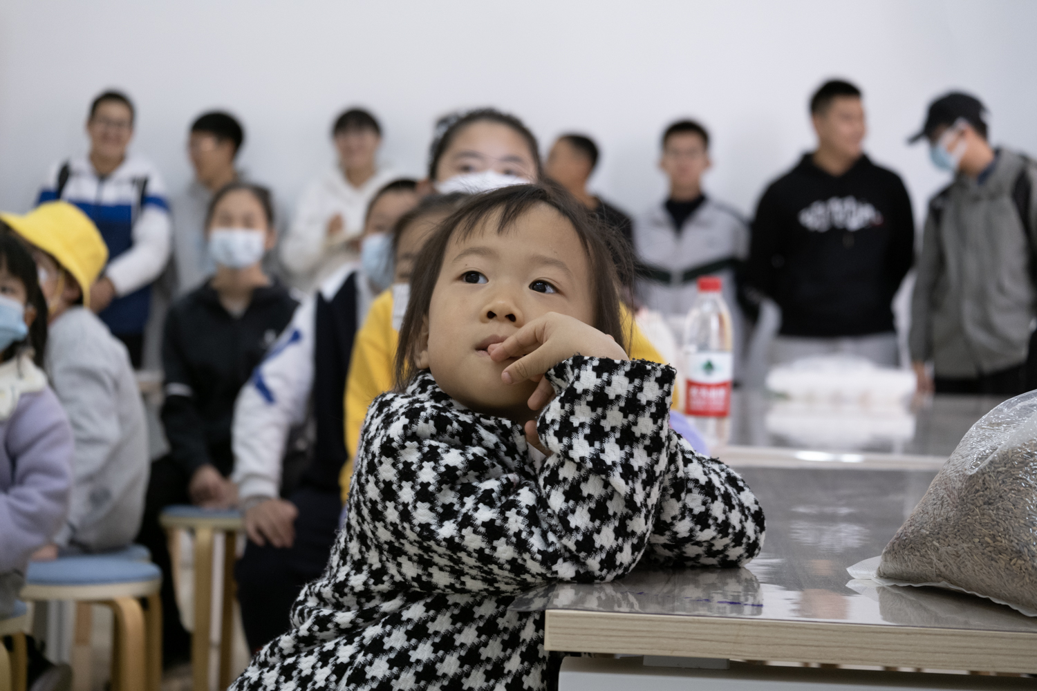 “大家都吃过什么颜色的稻米呀?”“白色!”“我吃过黄色的!”“还有黑色!”在江洋老师为孩子们带来的水稻栽培与黑米的加工和烹饪这一科普课程中,江洋老师用生动的图片形象地向孩子们展示了水稻在进化历程中的“亲朋好友”以及稻米从稻穀、糙米制成可以食用的白米的加工过程。“那种植水稻需要哪些东西呢?”江洋老师向小朋友们提问道,“阳光!土壤!还有稻草人!”在座的孩子们争先恐后地抢答,答案层出不穷。随后,江洋老师为孩子们展示了餐桌上的明星食物——黑米,介绍了黑米作为糙米的众多好处,并现场演示使用黑米脱壳机来对黑米进行去皮加工操作,孩子们对这一未知事物产生了极大兴趣,纷纷围观江洋老师的操作过程。最后,江洋老师给孩子们提供了煮好的黑米饭,孩子们依次领取,共同品尝黑米饭的别样风味。