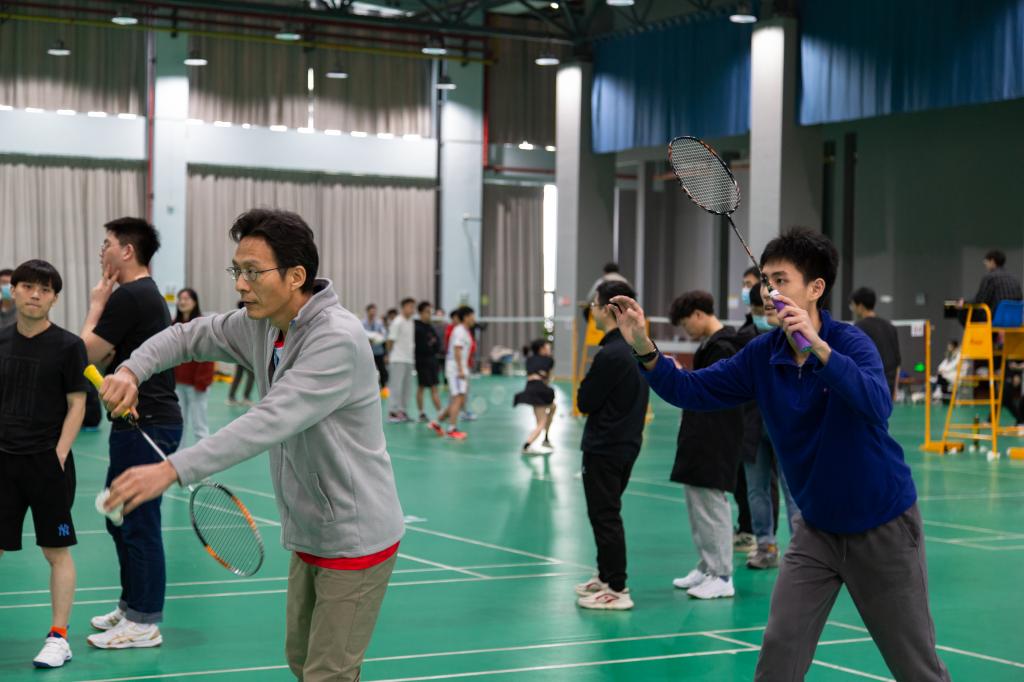 教工羽毛球队长汪金平老师将打羽毛球与做科学研究进行了对比,倡导同学们学会“思而后行”。他表示,在羽毛球比赛中要学会观察对手,掌握对手接发球弱势,伺机而动;一味的挥拍只能使自己处于被动地位,要带着目的去思考才能得高分;与此相似,在实验前,也要多阅读文献,从实验目的出发,切实分析实验需求和可行性;动手时做到精简、快速,避免人力、物力、财力和时间的无益消耗。在场师生纷纷表示赞同。
