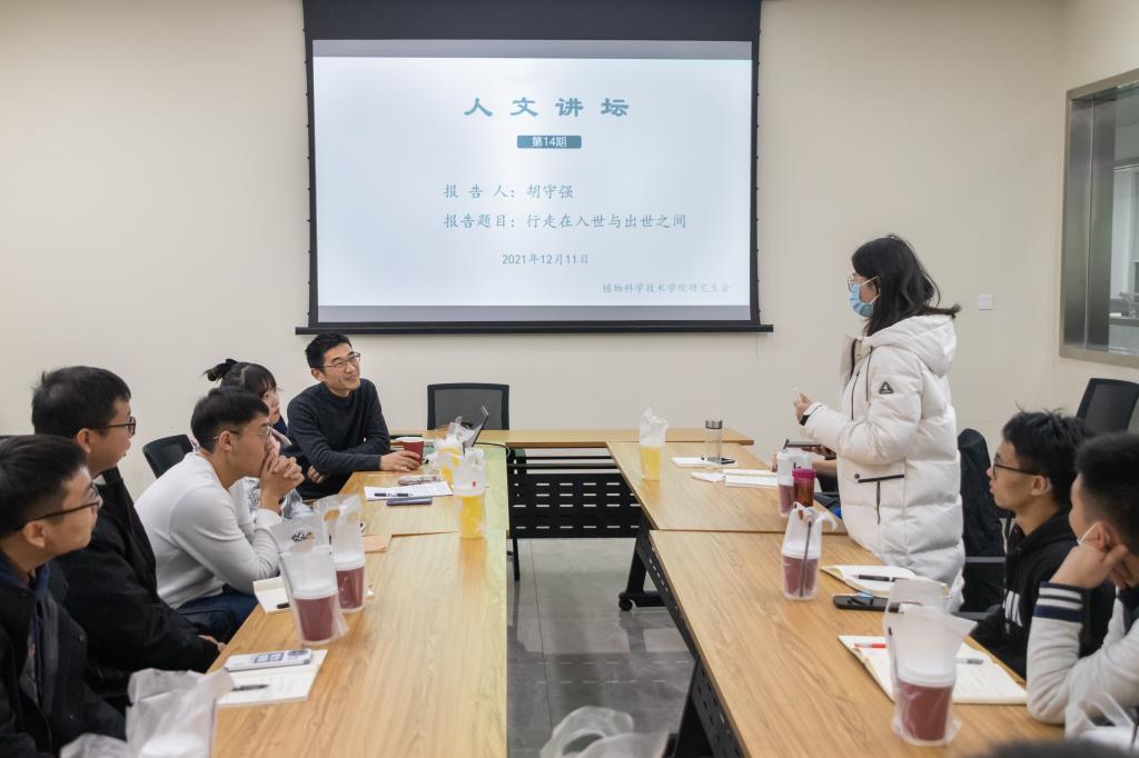 在自由交流环节,2020级作物遗传育种硕士研究生刘喻、2021级基础兽医博士研究生褚毅等同学结合个人当前科研状态、对国学的学习与思考等内容做了分享,胡守强也结合自己的理解与思考回答了在场同学们关于“科研”“国学”“内卷”等研究生关注的热点问题。
