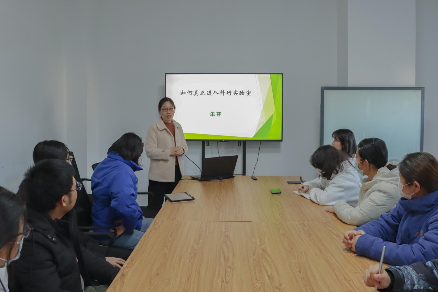 朱芬为现场同学们提出了四点关于进入科研实验室的建议。一要认人,即认清他人长处,取长补短,互帮互助;二要认环境,了解实验室空间布局,仪器分布以及仪器用法等;三要认规矩,每个实验室规矩不同,高效科研的前提是遵守实验室规矩;四要认“门”,即摸清科研实验室的门道,以科研思维发现科研问题,结合科研问题查阅科研文献,从科研文献中寻找科研灵感。