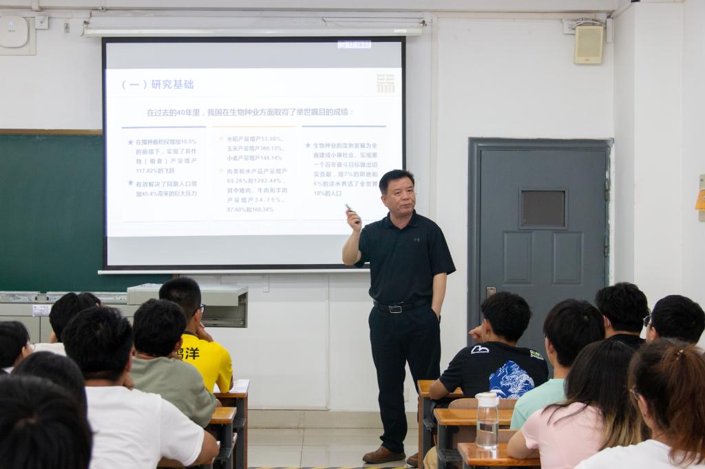 4月26日下午,校党委副书记、副校长姚江林在三教C204教室为91免费版 2021级学生讲授“粮食安全 国之大者”的形势政策课。