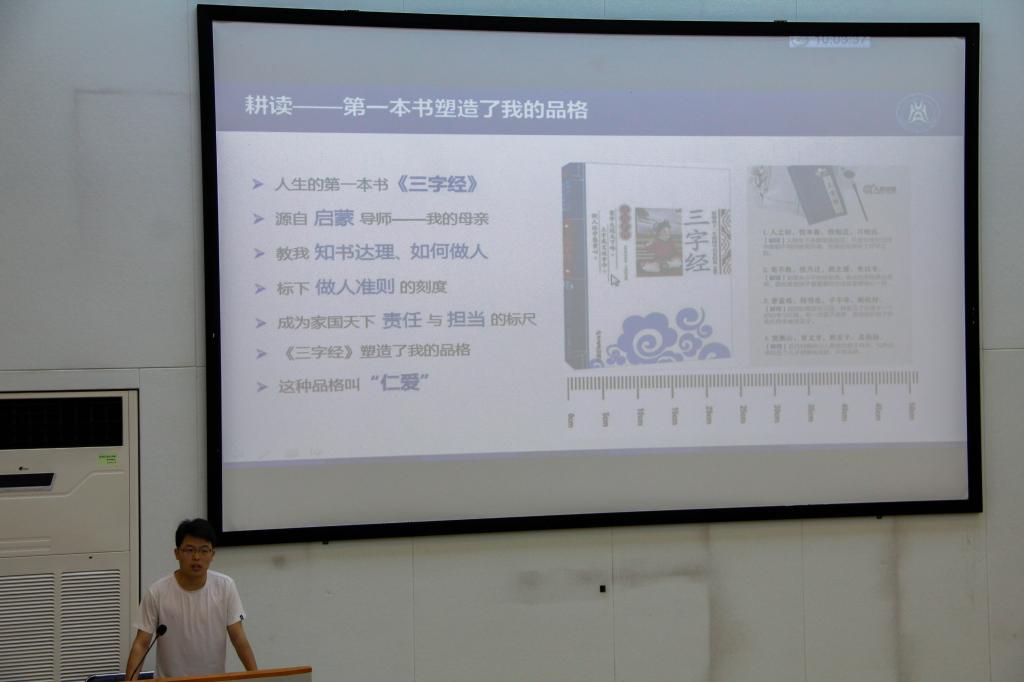 机制1804班的吴佳瑶以“耕读不辍,书香致远”为主题展开演讲。他结合自身成长经历谈及如何践行华农校训精神,并以仁爱、自强和极致三种精神勉励自己为修身齐家而读书,以学习、读书和运动三种方式激励自己为中华复兴而读书。