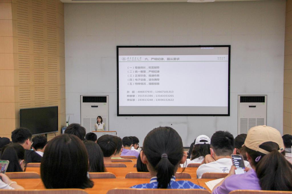 2021级本科生第三次年级大会在三教S1报告厅举行,21级全体本科生参加会议,会议由2021级辅导员李纵擎主持。会议由“十大阅读之星”吴佳瑶的分享和军训工作部署两大部分组成。