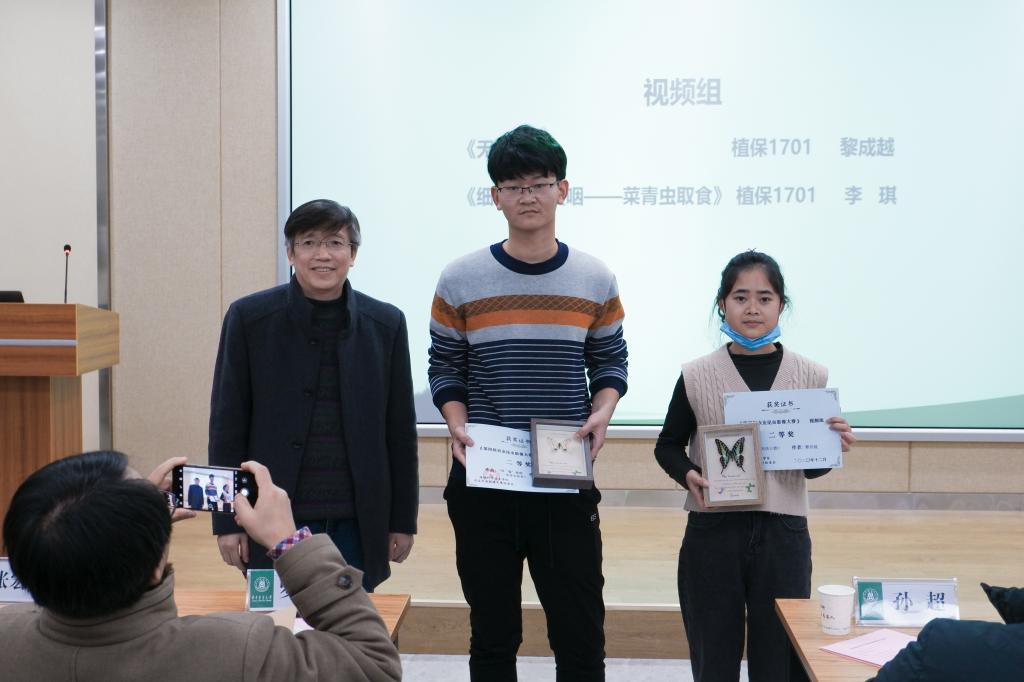 林秋彤分享自己作品的拍摄过程时指出,是自己的意外发现与细心观察造就了作品,这更使她意识到了善于发现的重要性。她同时表示自己的荣誉离不开老师们的辛勤指导与同学亲人的强烈支持。“在摄影过程中,我们不仅仅对昆虫更加了解,还巩固了自己的专业知识。”林秋彤分享自己的体会,“每一位植保的学子都应该明白,只有更深的了解才能更好的防控。“颁奖仪式在典礼过程中举行,随后颁奖老师与获奖选手进行了合影留念。