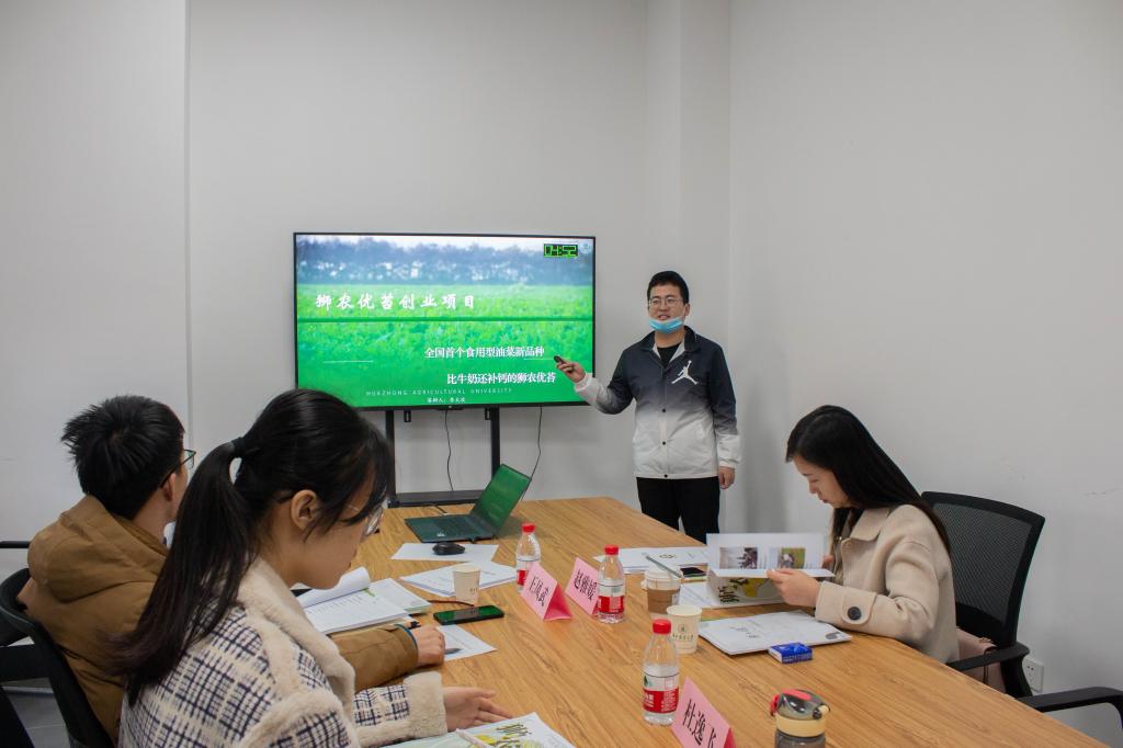 创新创业负责老师王凤武及湖北省互“互联网+”省赛银奖项目负责人杜逸飞担任评委,科创部李玉航主持。