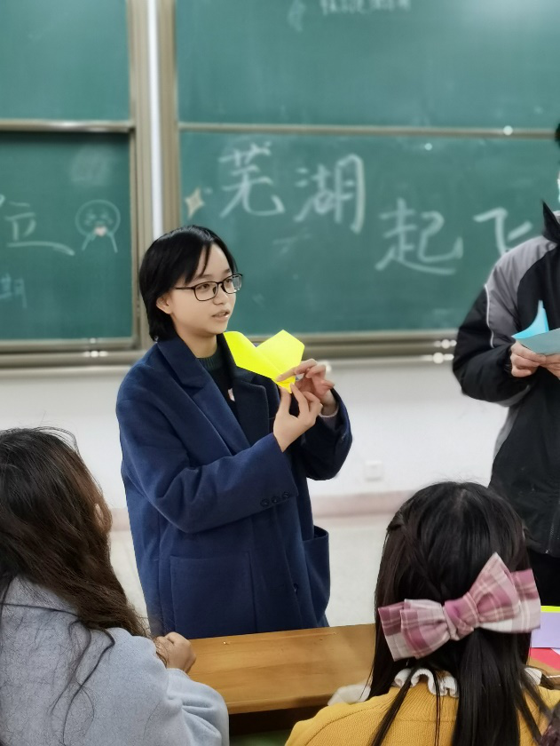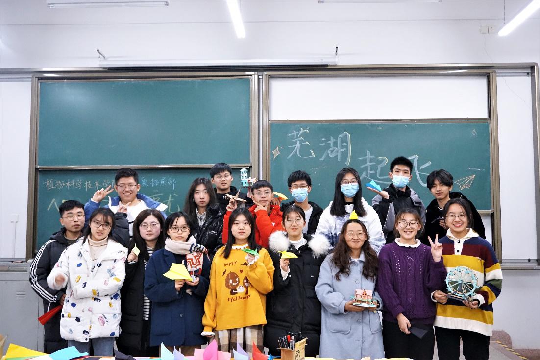 本次活动邀请到了具有高超手工技巧的植物生产类2008班心委王晓楠同学,由她为大家进行折纸飞机教学。同学们看到晓楠手下折出的独特飞机后,都跃跃欲试,经过跟学,每个人都拥有了属于自己的新型纸飞机。接下来,大家前往亚跨,放飞了五颜六色的纸飞机,看着亲手制作的飞机在空中划出一道道优美的弧线,同学们的烦恼和压力也都在放飞的瞬间释放出来。