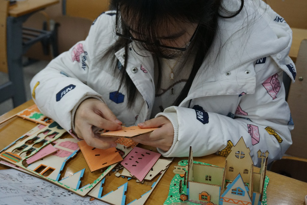 从亚跨回来后,同学们挑选了自己喜欢的立体拼图,并迫不及待的投入到拼图游戏中。随着时间的流逝,城堡、海景房、摩天轮、大巴车、钢琴等建筑在同学们手中逐渐成型。看着在自己手中完成的精美拼图,一股股成就感油然而生,每个人的脸上洋溢着发自内心的笑容。