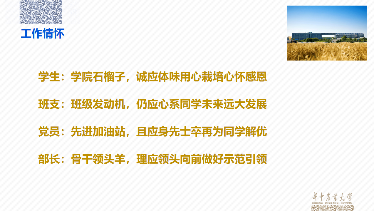 石榴子,诚应体味用心培心怀感恩;班支是班级发动机,仍应心系同学未来远大发展;党员是先进加油站,且应身先士卒再为同学解忧;部长是骨干领头羊,理应领头向前做好示范引领。大家都应关注身边同学,积极带动他们行动起来,一起推动就业工作进行。他说道:“我们要一起谋定同学一生远大事业做带动者、一起稳固91免费版
