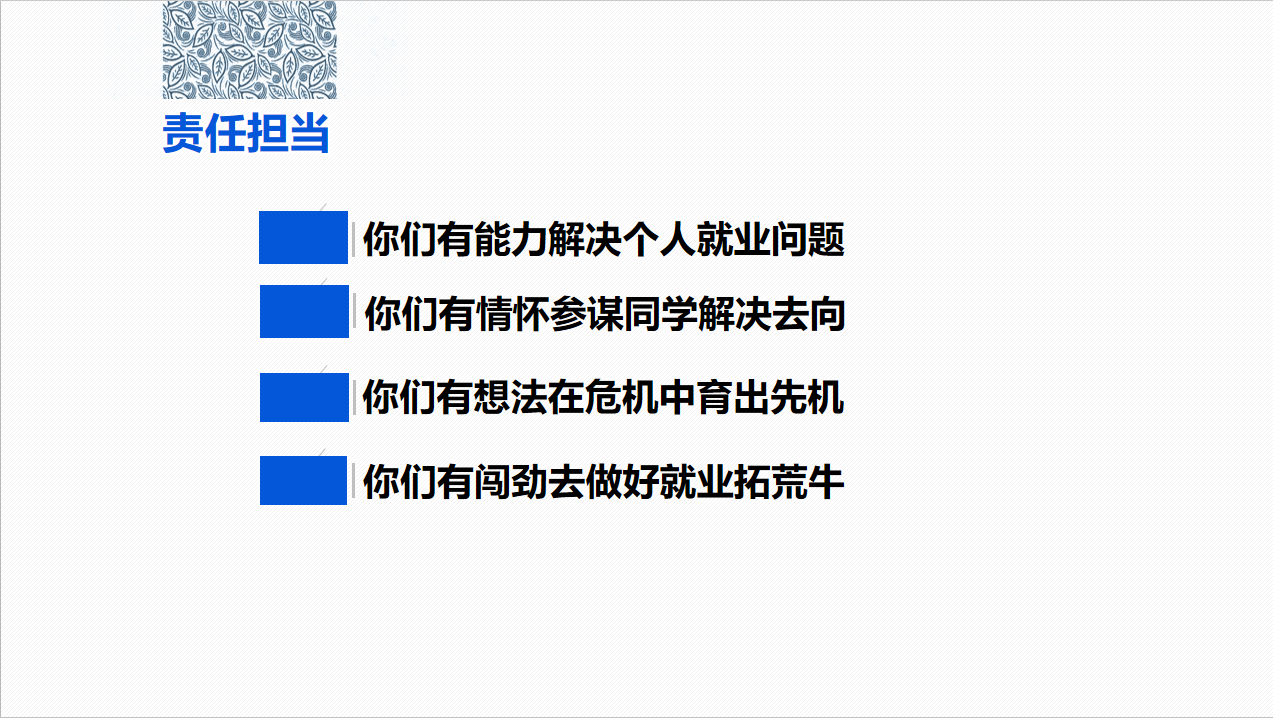 2017级就业工作。“惟愿你为未来,勤做一流就业行动者;惟愿大家一起,携做一流就业大工程。”