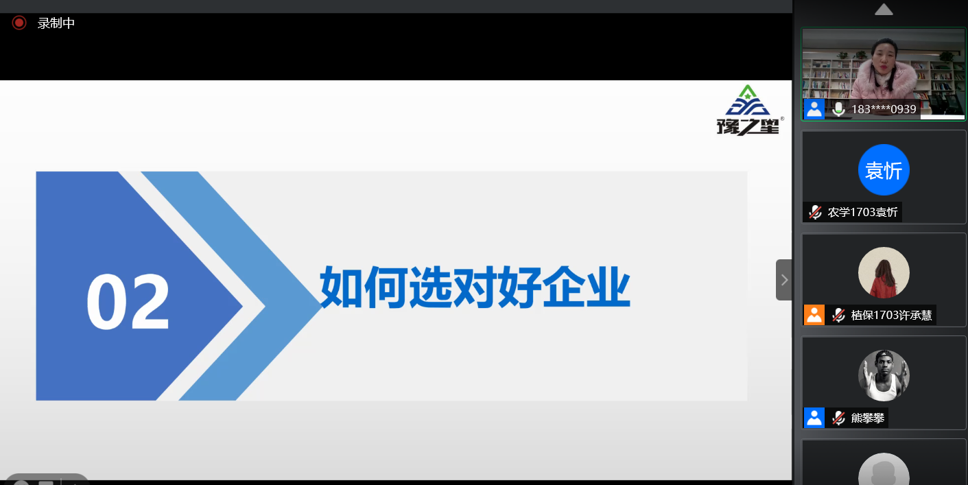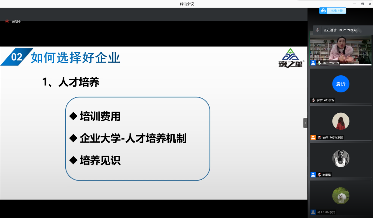 面向2017级全体考研和就业学生逾200人于线上召开“HR聊生涯”暨年级大会。