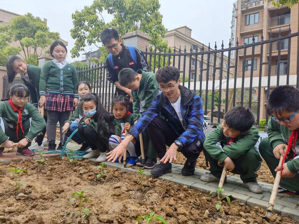 青年志愿者服务部与三田创新工作室共同前往汉阳区楚才小学开展志愿服务。志愿者们为同学们讲解了如何栽培作物,并带领他们在幸福种植园中亲自动手来体验劳动的快乐。