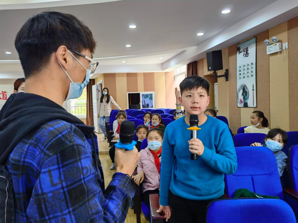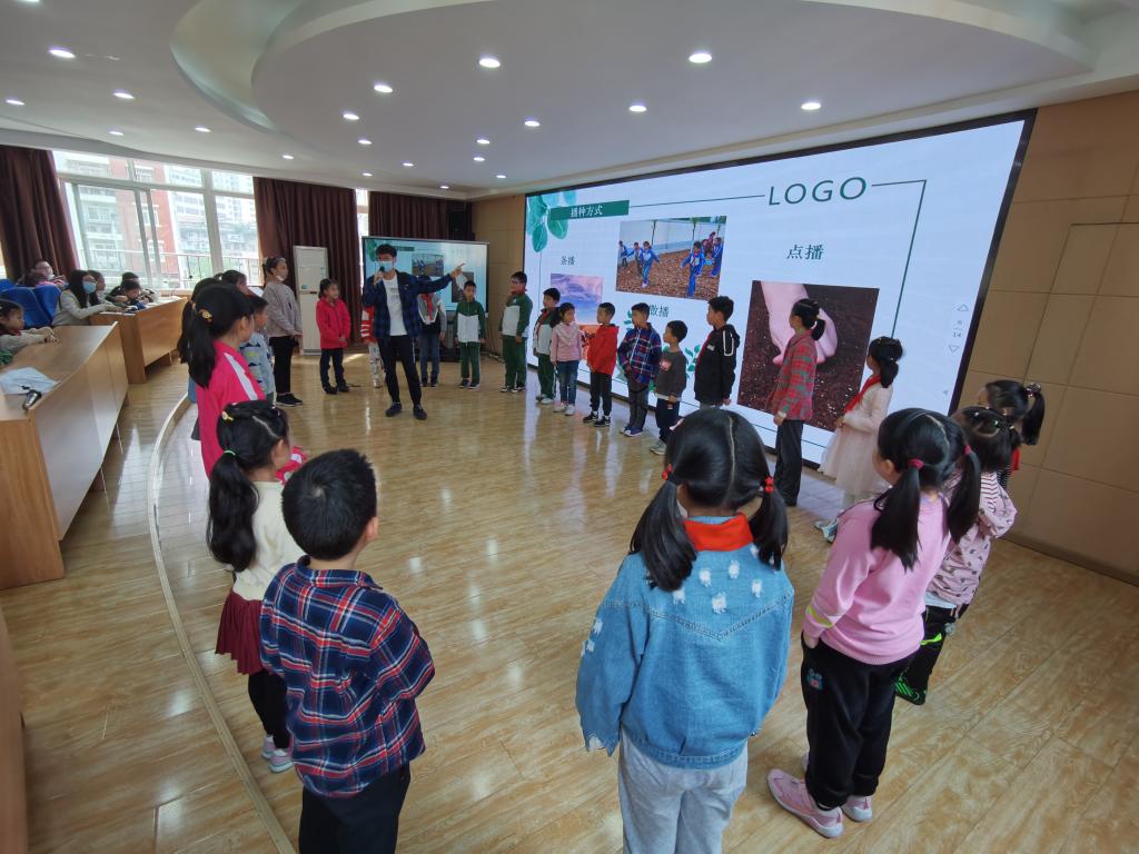 随后,彭奕鸣又依次介绍了种前处理需要的晒种、浸种和药剂拌种三个步骤以及在播种前的开沟、整地和施基肥等田间管理方式。期间,不少同学拿出笔记本,认真做了记录。在讲到播种方式时,彭奕鸣通过玩小游戏的方式进行了讲演。小游戏邀请了几位同学来到讲台上并围成了一个圈。每当彭奕鸣说到撒播时,同学们就保持一定距离;说到点播时,每三位同学便抱在一起;说到条播时,三到五位同学就要站成一列。台上的同学玩的十分投入,台下的同学则进行场外指导。通过这个小游戏,同学们对如何区分并采用不同的播种方式有了更加深入的了解。在谈到作物移栽时,彭奕鸣生动形象地将移栽操作比喻成人们走路,他说道:“人要穿着鞋子走路,那么植物也要带着土搬家。”同学们都纷纷点头,表示赞同。之后,彭奕鸣向同学们展示了自己种植的蔬菜,并与志愿者以及学校老师们一同带领同学们前往幸福种植园实地观看植物,在实践中指导同学们如何进行田间灌溉和松土,并介绍了防虫、施肥和除草等操作技术。