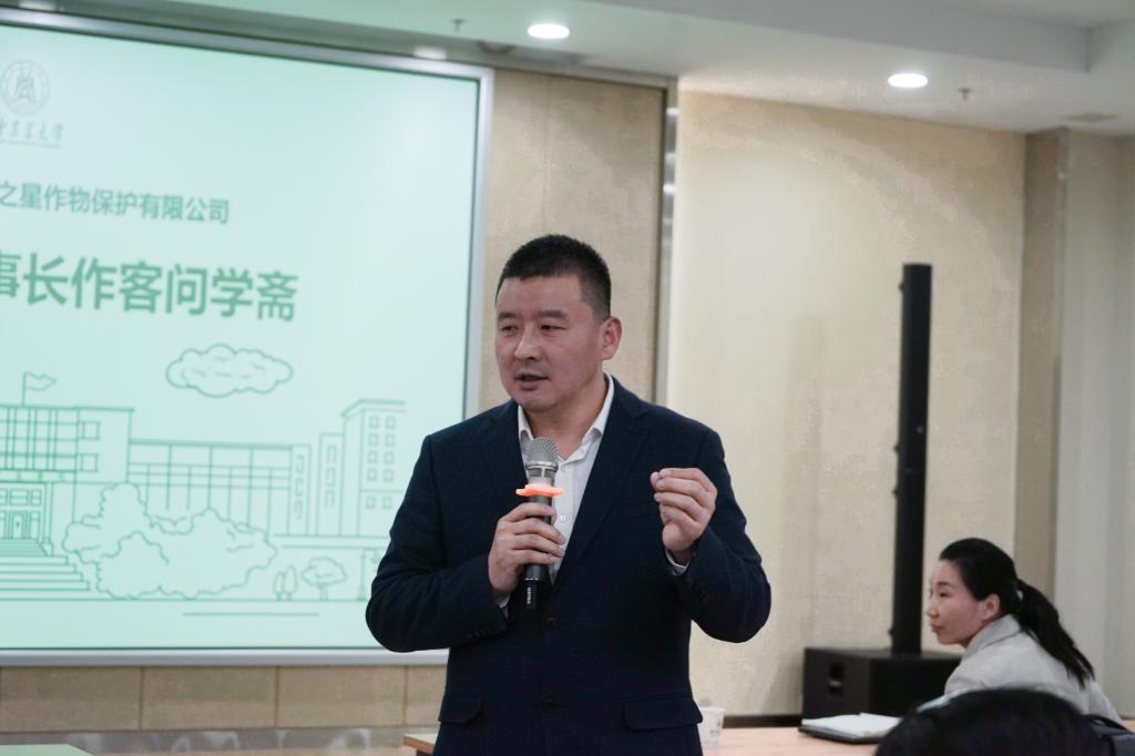 在谈到中国农业的未来时,他慷慨激昂地介绍道:“现在很多人都对农业存在偏见,这其实是行业的问题,是企业没有把这个行业塑造好。”他以豫之星公司近几年的发展状况为依据,预测未来一定会出现从零售到战略的整合,大企业一定会引领行业的发展。最后,他以豫之星大学的校训“知识结合实战,梦想必能实现”寄语在场的同学。