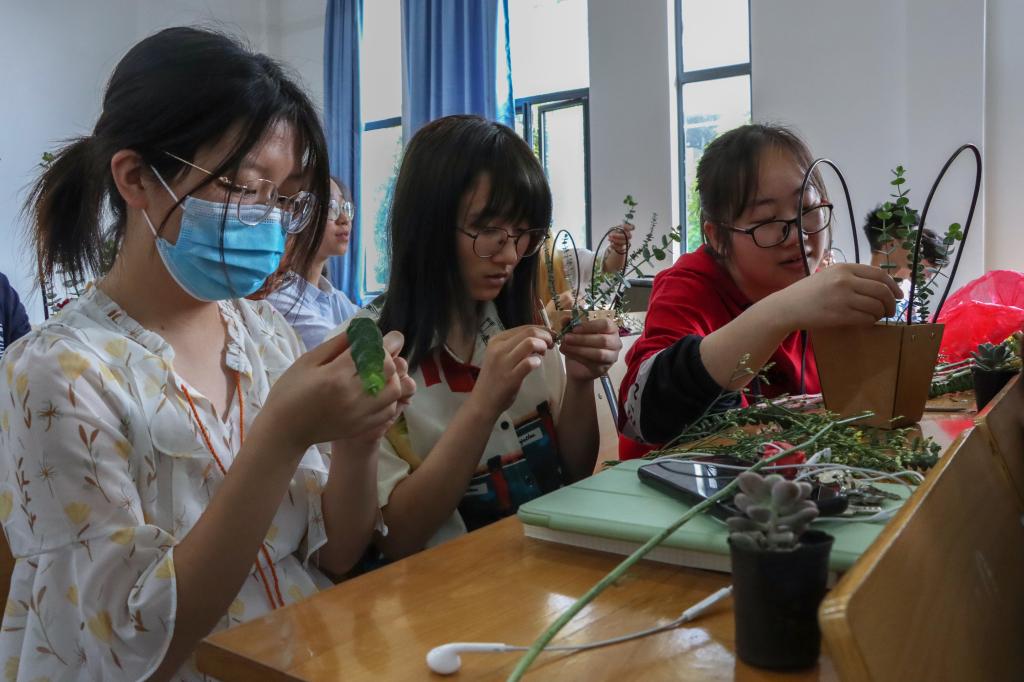 据悉,本次活动所得的插花作品将会进行公益售卖,所得善款将交与青禾支教团,最终捐赠给贫困山区的孩子们。活动最后,同学们手捧自己的作品合影留念。
