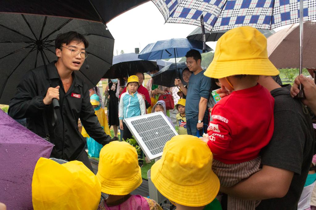 在《稻田里的小生命》课堂上,小朋友们参与了江洋老师的互动课堂,江洋老师生动的讲解引发了小朋友思考和探究兴趣。江洋还借助动画片,生动有趣地展示了水稻的生长过程,介绍了株高与生育期的关系等问题。课堂中他向小朋友们提问道:“水稻大概要经历多长时间才能从种子发育到成熟呢?”小朋友们争先恐后地回答,“100天!”“90天!”,答案层出不穷,他对小朋友们的认真听讲给予了表扬。在介绍生物防治时,小朋友们和江洋互动了“鸭子为什么只吃杂草,不会吃水稻吗?”的问题。小朋友们还积极讨论了生活中哪些常见食物是由稻米制成的。大家在讨论和思考中增长知识。