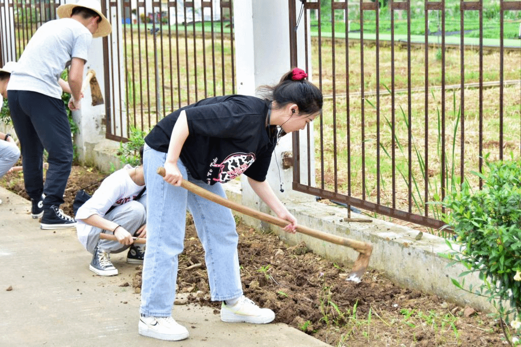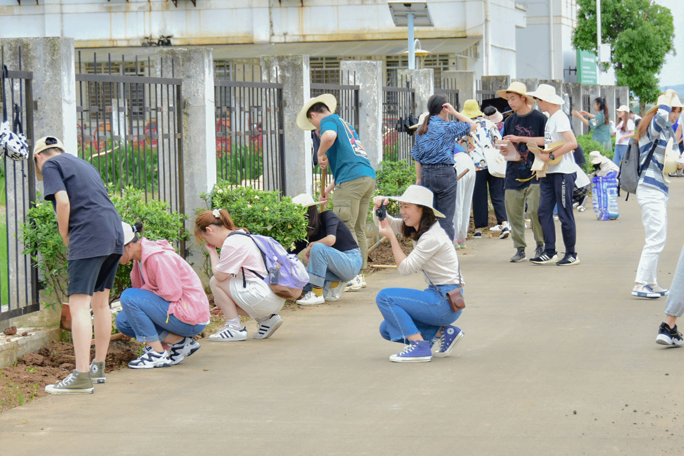种植过程中,老师家庭与大学生协同劳作,拿着锄头、耙子等工具在三田基地的道路两侧开始种植。大家在整地、施肥、播种、浇水等一系列农事操作中享受师生平等交流、共同劳着的快乐。广告1901潘浩充满诗意地分享了对种子的期待:“触摸初夏的田野,洒下花的种子,很期待牵牛花攀上栏杆,向日葵热烈绽放的日子,那时候一定会去看看。”