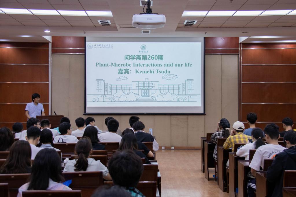日本籍教授津田贤一受邀出席本次活动,他以“植物-微生物相互作用与我们的生活”为主题,生动有趣的介绍了他的研究和生活。