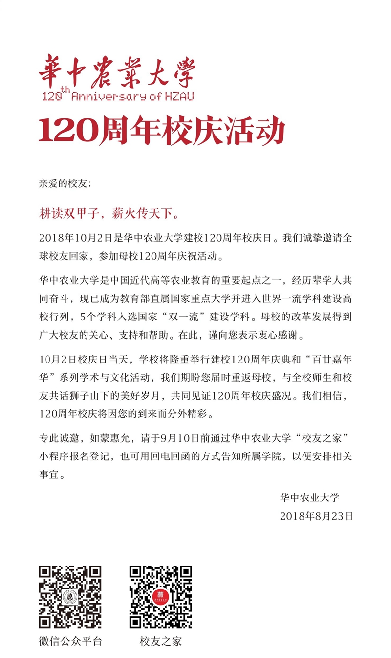 诚挚邀请全球校友回家参加母校120周年庆祝活动