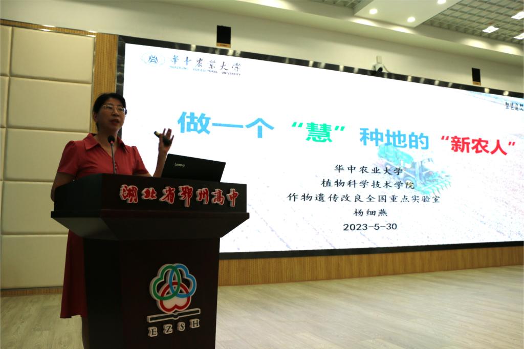 赴鄂州高中开展招生宣传,杨细燕教授面向鄂州高中高二学子,以“做一个‘慧’种地的新农人”主题开展专题报告。
