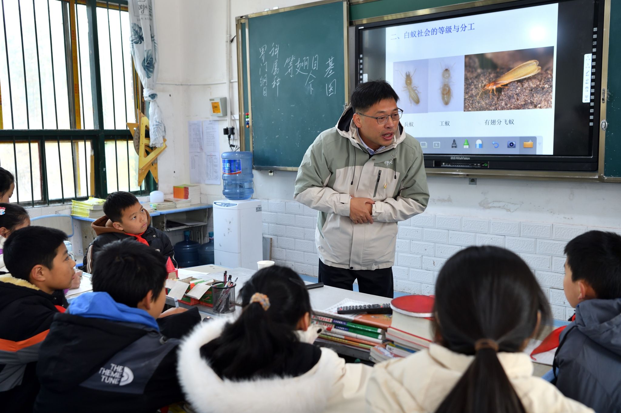 “请同学们思考一个问题,白蚁一定是害虫吗?”现场掀起阵阵讨论。黄求应谈到,白蚁可以与其他生物互作共生、可以为花朵传粉,它们在生态系统中扮演着不可或缺的角色。“很多被认定为害虫的生物,其实都在默默维持着生态平衡。它们能够飞行几百上千公里,是大自然的重要传粉者。”他与同学们分享到,“希望同学们能够用辩证的眼光看待任何一种生物,尊重每一种生命。”