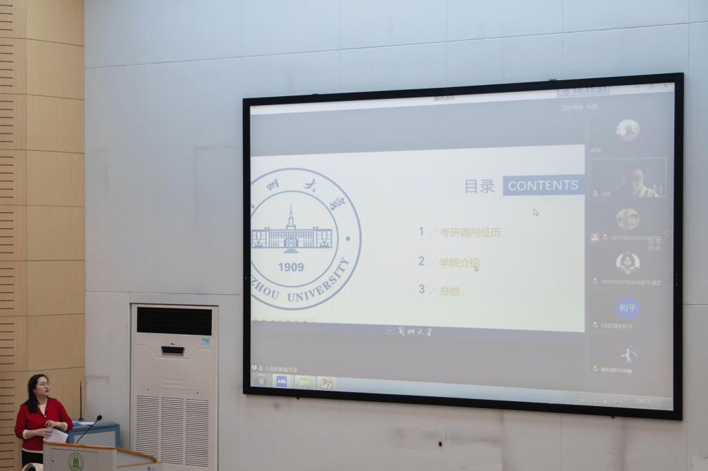 马坚以自身考研调剂经历为引,向同学们分享了考研调剂经验,并对目前所在学校兰州大学草地农业科技91免费版