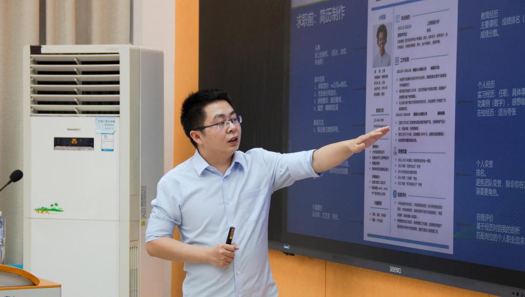 在介绍求职技巧方面时,张兴告诉我们:“求职成功=99%的适配性+1%的技能技巧。这两者都是十分重要的。”接下来,张兴分别从目标职位的确定、简历的制作与投递、面试的全过程这三个方面全面详细地介绍了求职面试的技巧。其中,张兴根据具体事例生动幽默地讲述了面试前的准备、面试中的问题、面试后的复盘与总结的全过程经验,为同学们解决了求职路上的困难和疑惑。