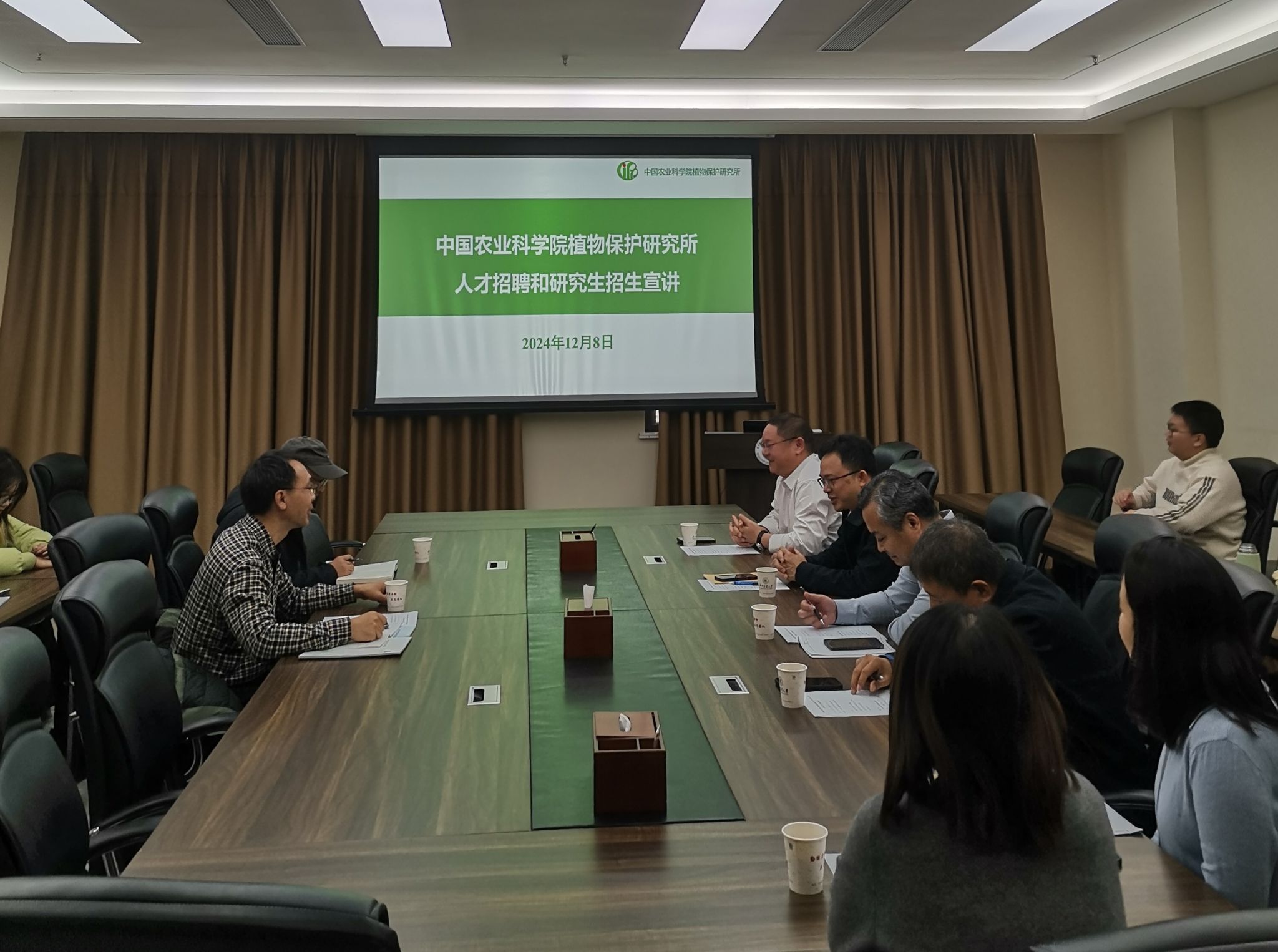 植物保护研究所招生引才宣讲会在第三综合楼B308顺利举办。植保所副所长刘文德、研工处处长王恩涛、人事处副处长刘博、华中农大校友曹坳程、周焕斌、陈淑宁研究员参会并做分享,91免费版